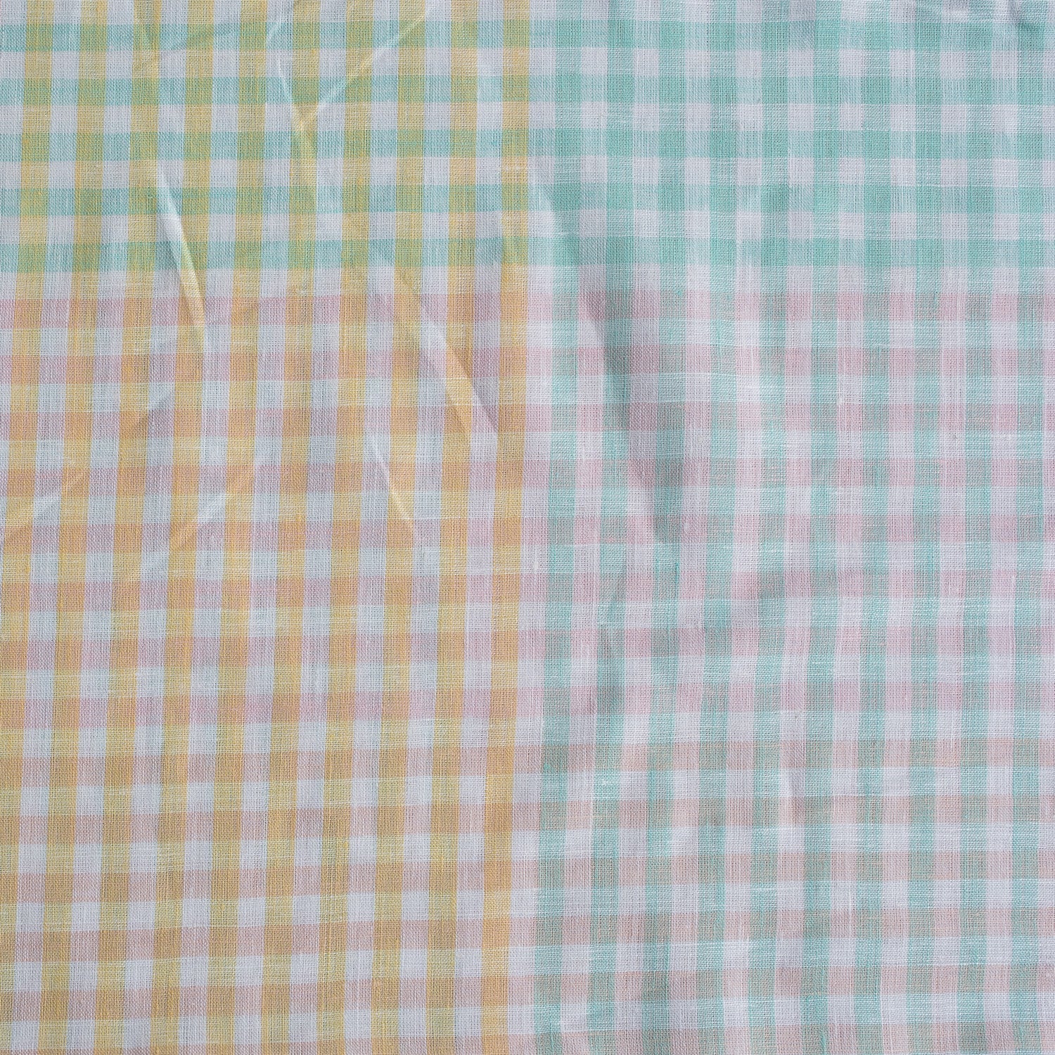 A dreamy pastel gingham in pale summer colours on a white background makes us think of a picnic in the park. Stylish and versatile, this fabric makes a trendy addition to the wardrobe as well as the interior. It features 100% Linen and has a soft grip and lightweight texture.