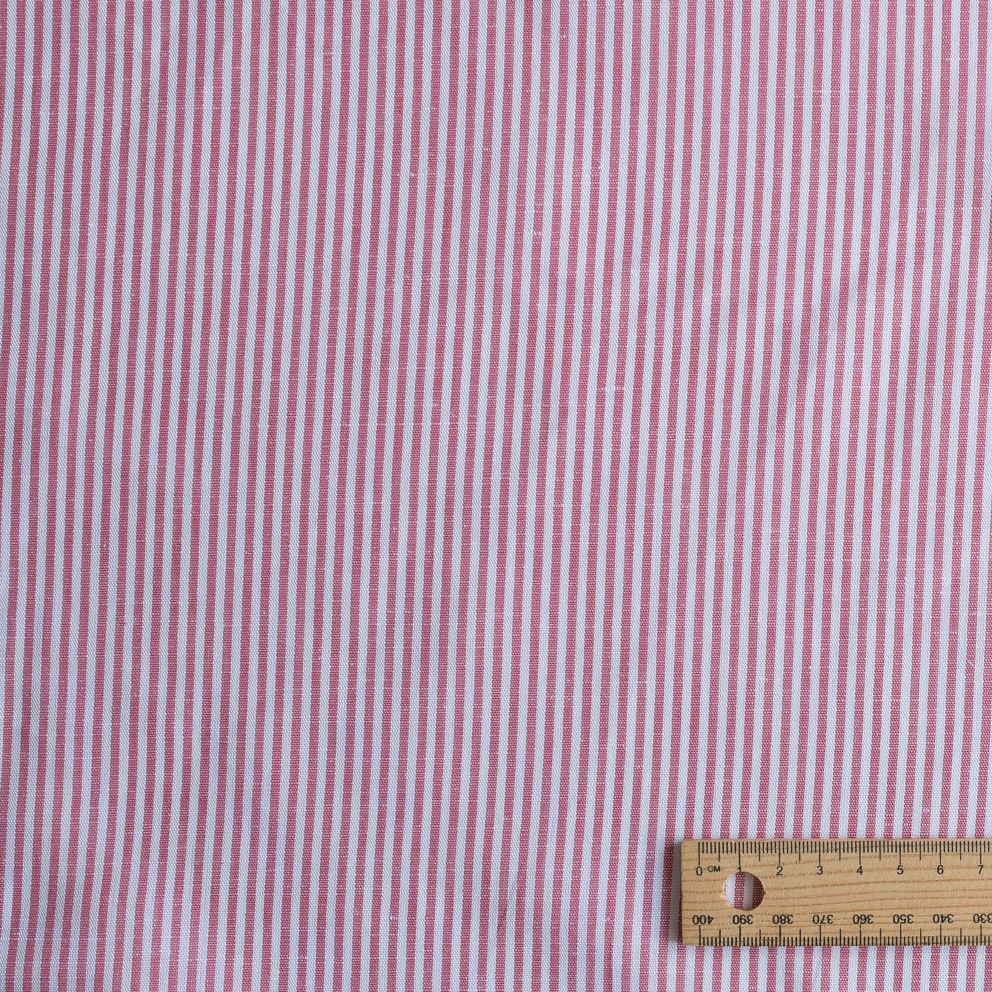 $6.50Meet Raspberry Pinstripe, a vibrant yet refined linen featuring crisp white vertical stripes on a warm raspberry-red base. Lightweight and breathable at 130 GSM, this fabric brings a cheerful coastal energy while maintaining the natural texture and elegance of 44 LEA, 100% linen.
