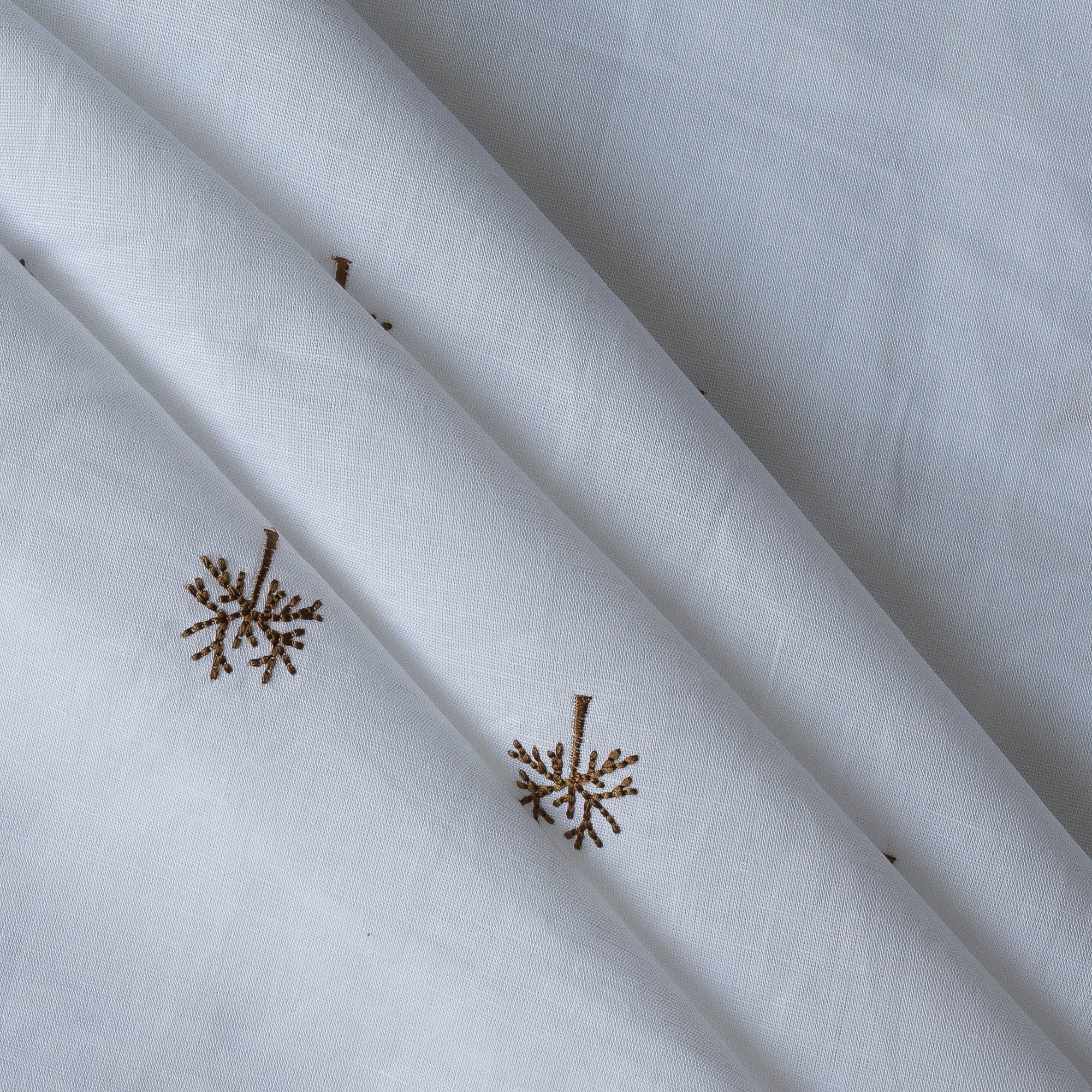 $10.00Introducing Wintertree Embroidery, a beautifully refined linen–cotton fabric featuring a delicate dark-golden embroidered tree motif on a pure white base. The design evokes the quiet beauty of winter branches—minimal, elegant, and thoughtfully detailed—making it perfect for sewists who appreciate subtle artistry.
