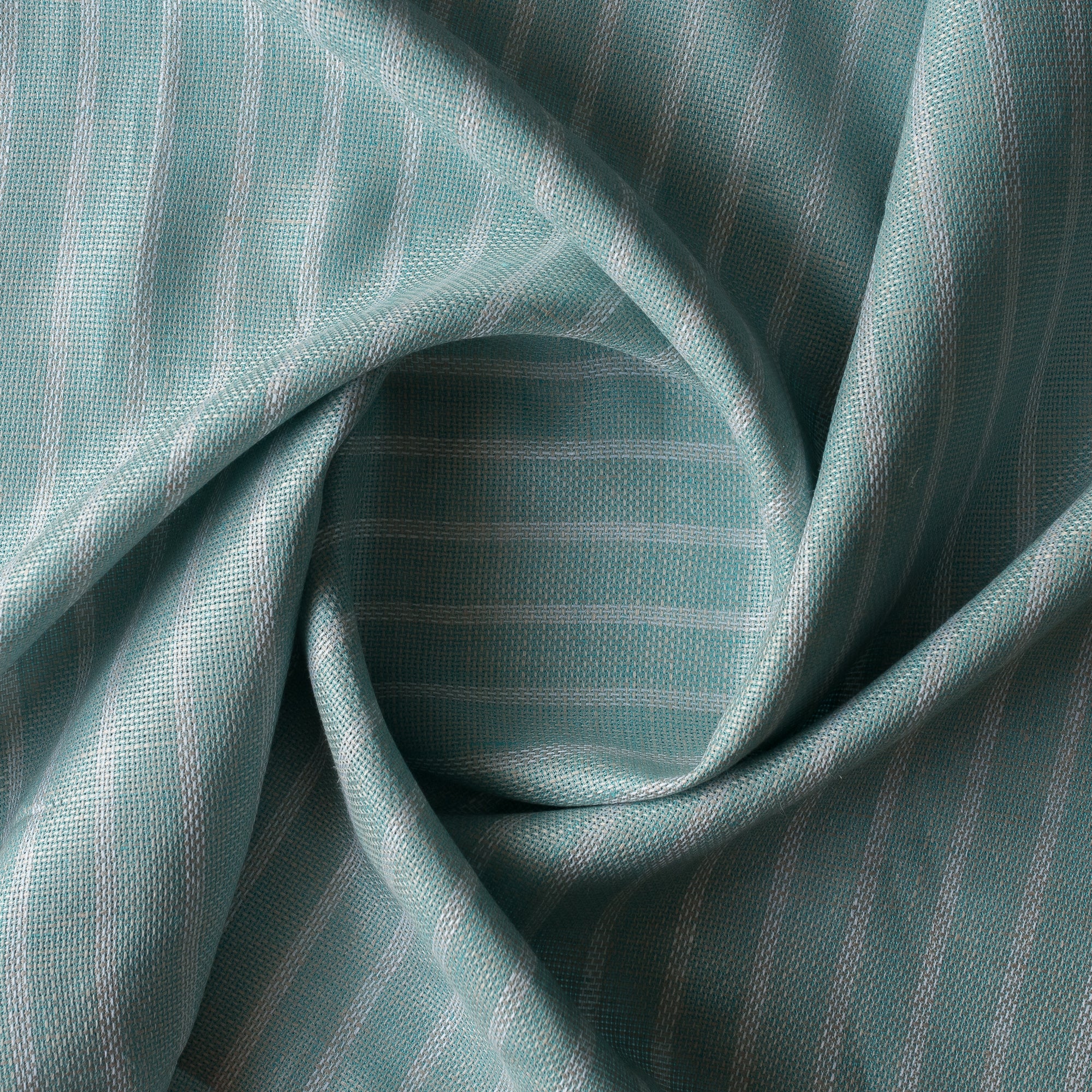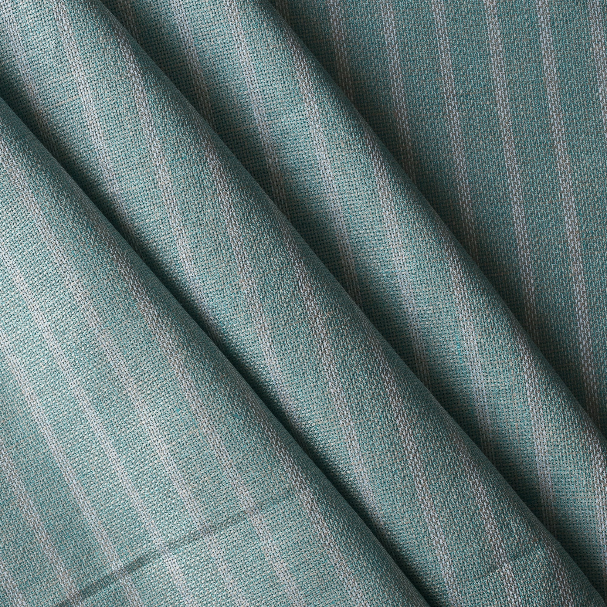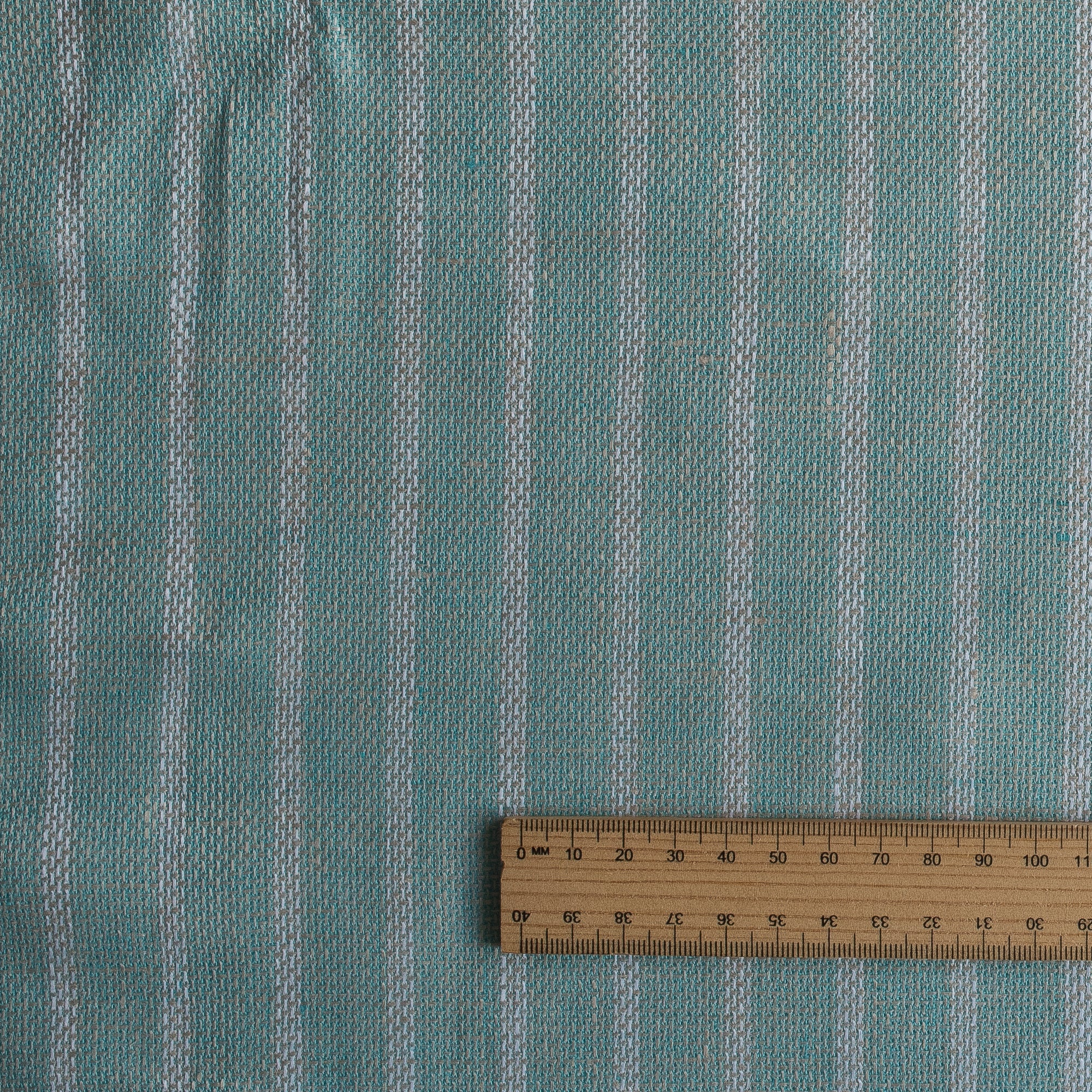 $8.50Mint Shore Stripe brings a refreshing coastal character to natural linen. Woven from aqua–mint and soft beige yarns, this fabric features slim white vertical stripes and a beautifully textured surface. The close-up weave reveals a gentle wave-like movement, created by the interplay of naturally slubbed linen fibres — giving the fabric an artisanal, handwoven feel.