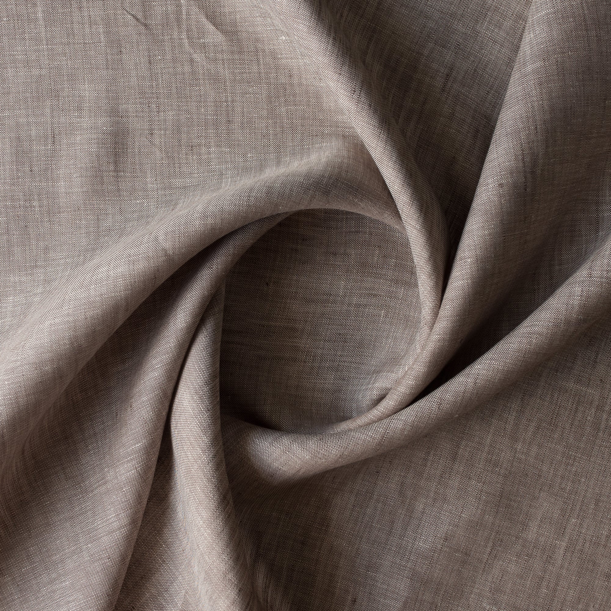 Earthbound Chambray is a beautifully textured 100% linen woven in a warm taupe tone, blending soft grey and natural clay hues. With its subtle chambray variation and breathable 145 GSM weight, this fabric offers the perfect balance of drape, structure, and everyday wearability.