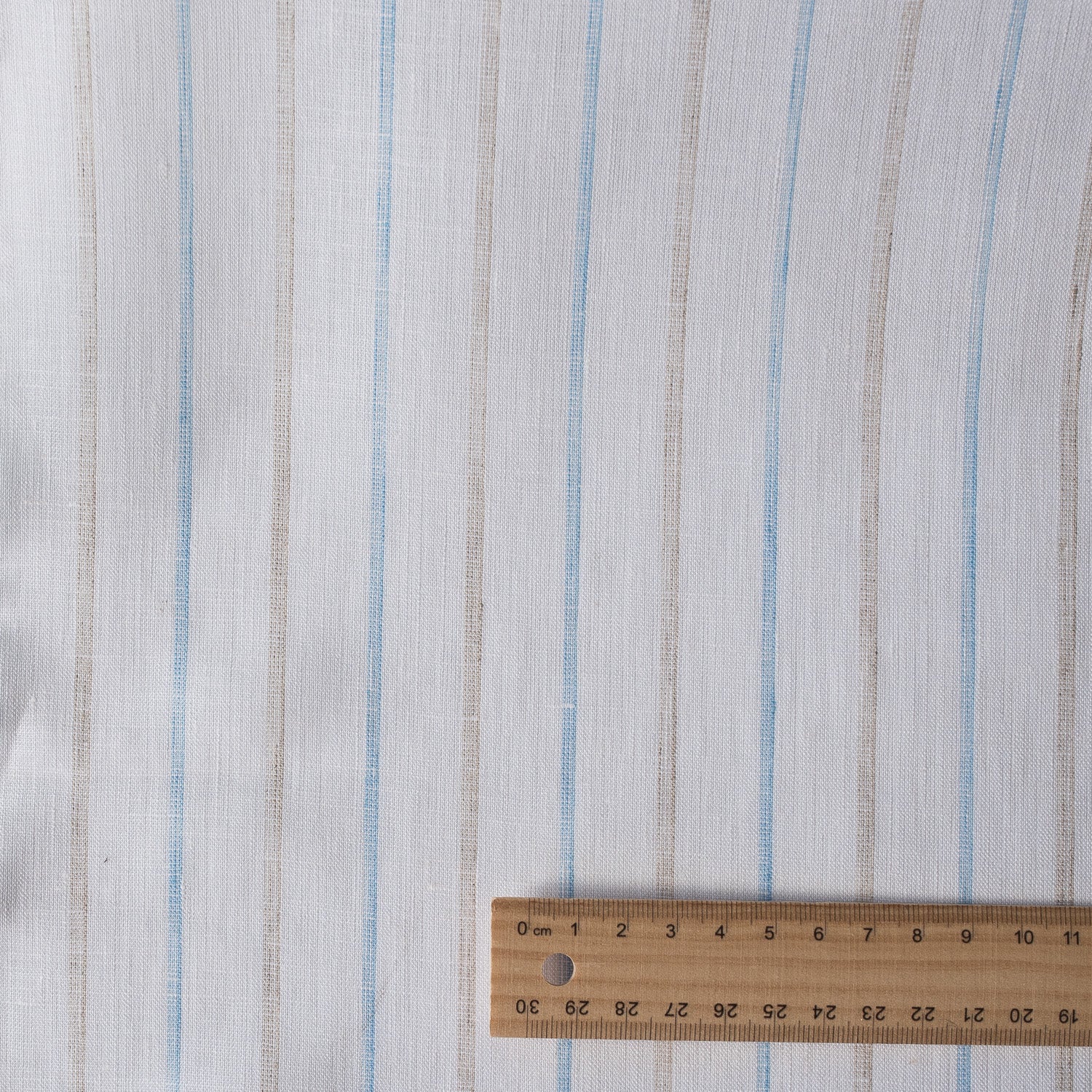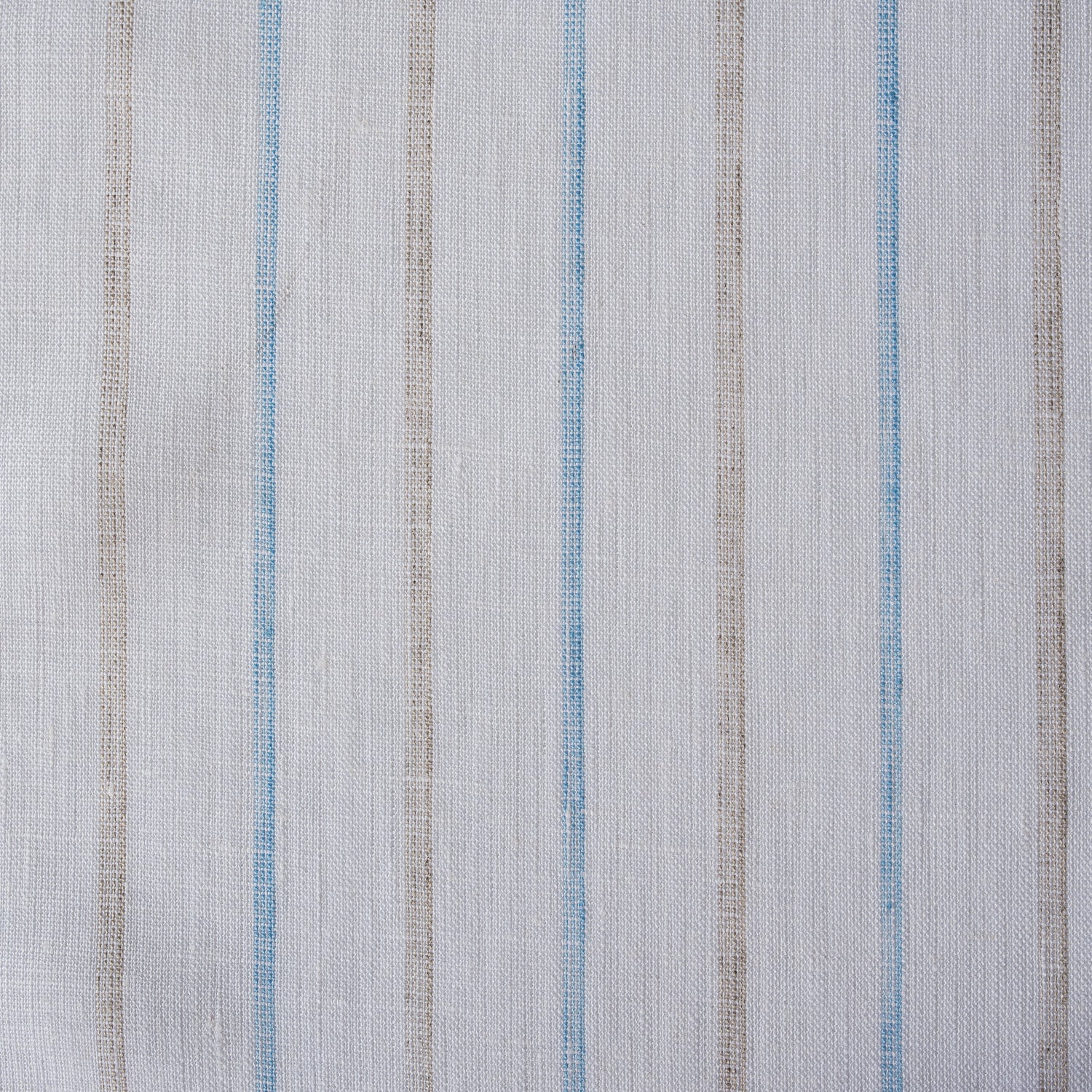 Yarn-dyed earth and sky stripes on white linen, this fine, closely woven linen already has a soft hand and delicate drape.