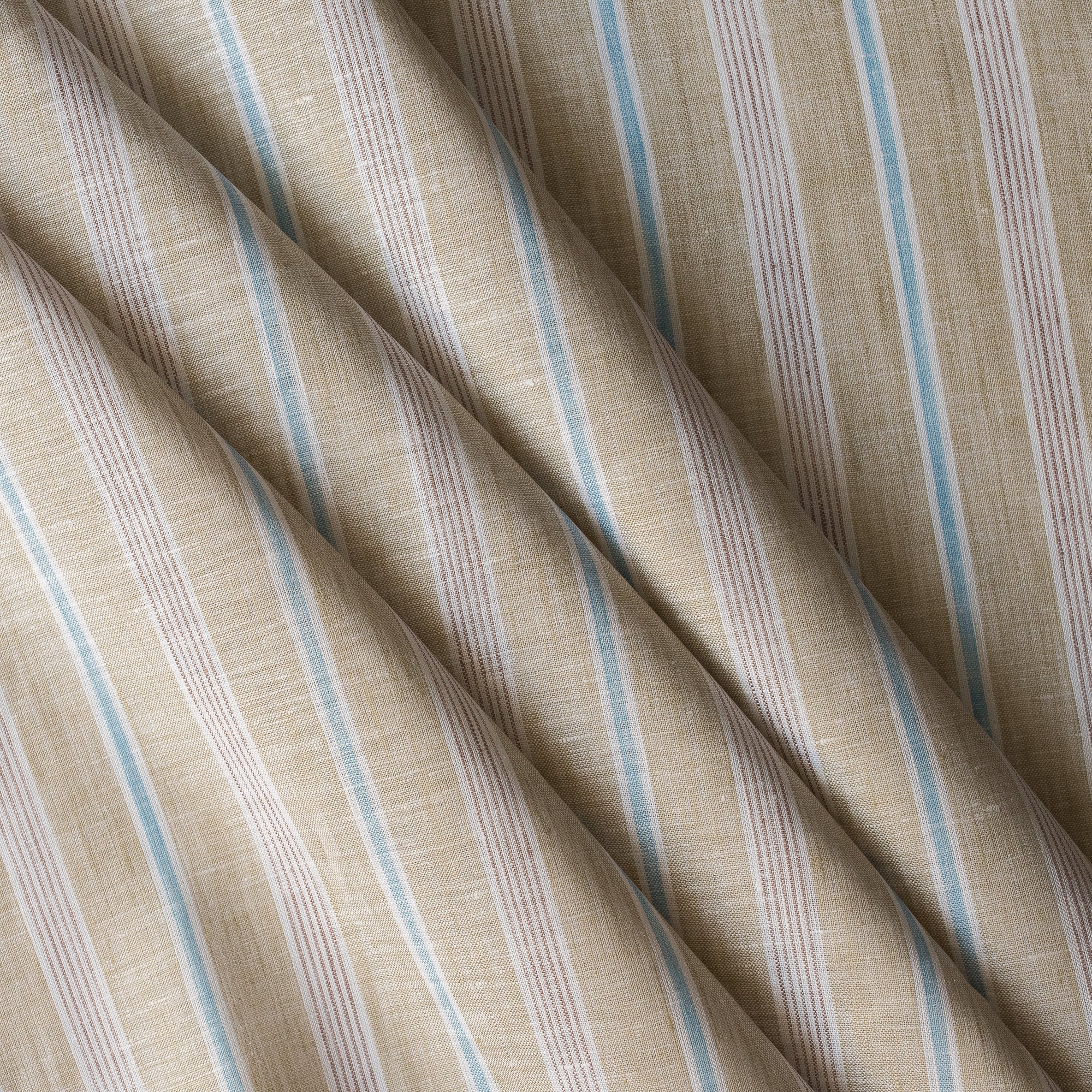 Seagrass Pinstripe is a beautifully understated coastal linen inspired by the tones of dried beach grass and soft shoreline light. The pale sage-beige base (HEX #BFB6A1) is accented with fine light-brown pinstripes, while soft white and sky-blue lines add a refreshing, breezy touch. The result is a calm, natural palette that feels elegant, earthy and easy to wear.